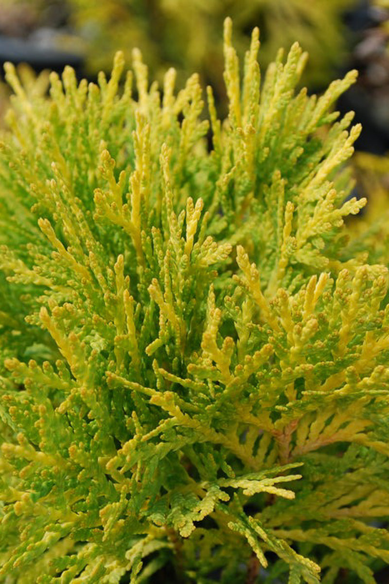 'Amber Glow' is a compact arborvitae that gives some amazing color. 'Amber Glow' has bright yellow-green foliage during the summer. As fall approaches, the foliage turns a more bright yellow. During the winter months, 'Amber Glow' turns to a brilliant amber to give a unique winter interest. 'Amber Glow' may reach 3-4 ft in height and width in 10 years.