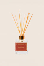 Details: 5 fl oz diffuser oil; square glass bottle with gold collar; includes 8" reeds; boxed for gifting or display