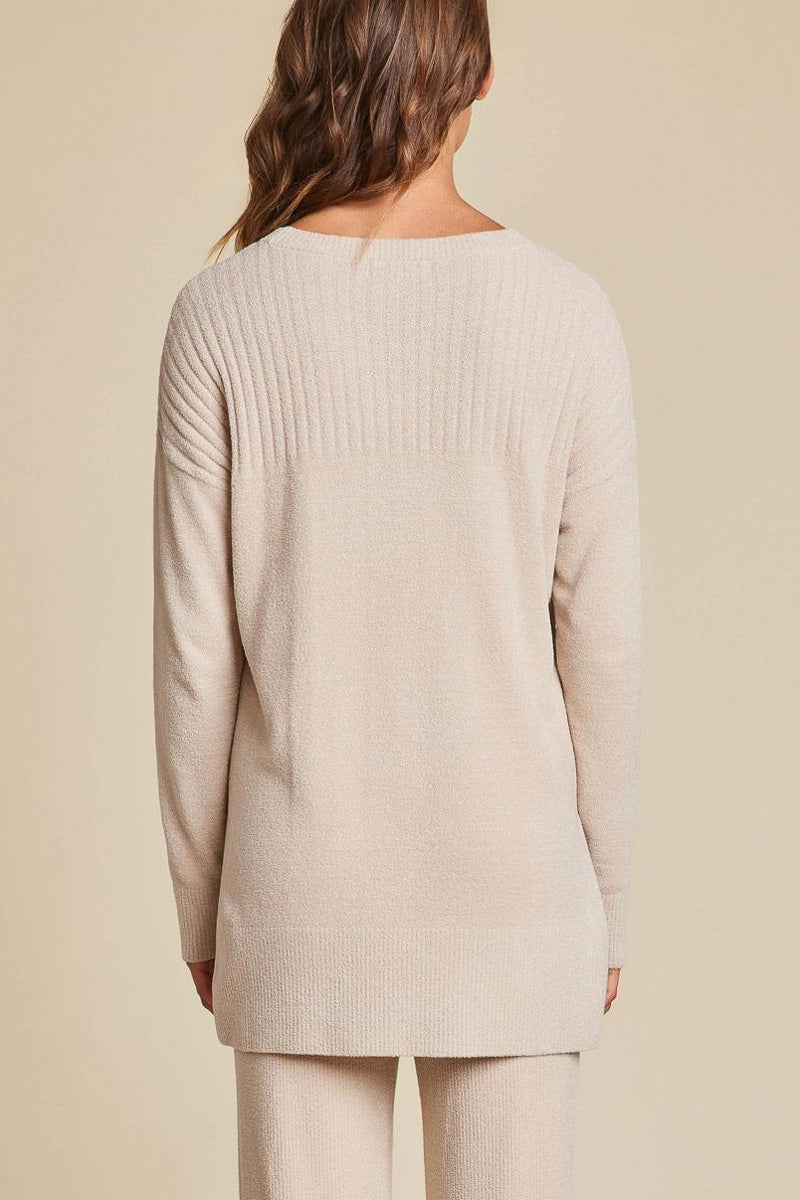 Barefoot Dreams Woman's CozyChic Ultra Lite Crewneck With High Slits Medium Stone