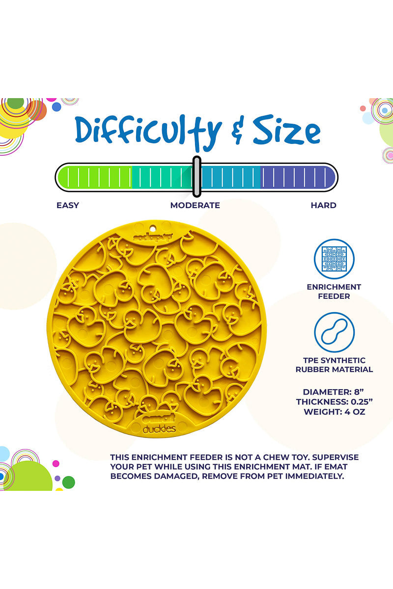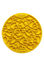 Unit price perRubber Ducky, you're the one! If your dogs are like mine, they don't love bath time. But that's about to change! Spread some peanut butter into the surface of the Duckies emat and stick it on the side of the tub, giving your dog an enrichment distraction while taking a bath! The Duckies emat features suctions cups on the back making it ideal for sticking it to the tub, or the refrigerator, or to smooth tile floors.