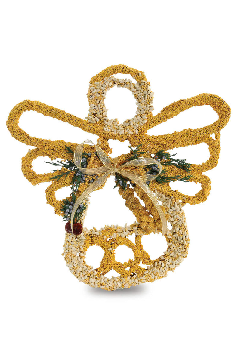 A beautiful grapevine angel adorned with premium seed, fruit, a pinecone, and natural greenery.