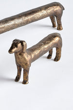 Made of a heavy cast aluminum, this set of regal dachshund sculptures are worthy of a prime bookshelf spot. With abstract, exaggerated features, a darling addition to side table or ottoman.