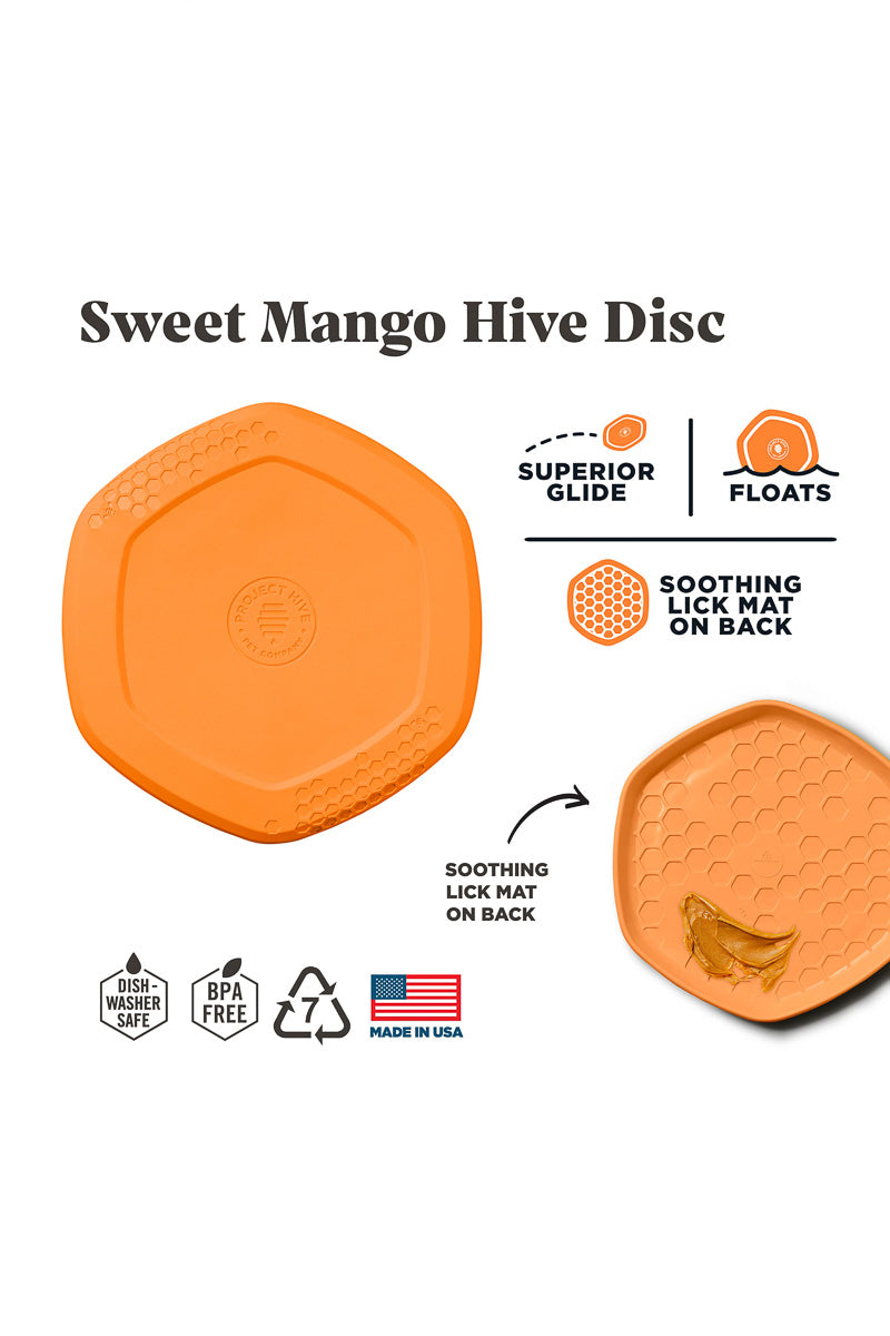 Unit price perPerfect for dogs who love retrieving games, our mango-scented Hive Disc will be your dog’s new favorite flyer! The Disc's bright color makes it easy for you and your dog to find indoors and outdoors. Did you know that scented toys can further engage your dog during play, while also fulfilling a key enrichment need? All aromas in the Hive Scent Collection connect to our mission to save the bees by either feeding bees or needing bees for pollination.