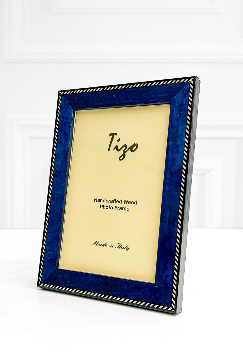 Tizo Narrow Braid-Border Wood Frame Royal Blue 4 x 6