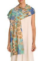 Powder Design Cotton Scarf Springtime Floral-Denim Blue