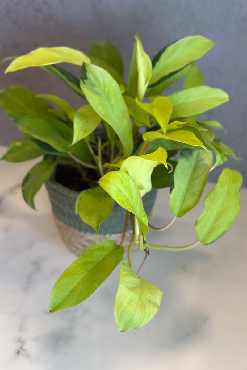 Unit price perOne of the most common houseplants, Pothos is a vining/hanging plant that is very adaptable to our interior environments allowing it to grow in almost any condition. Pothos like to be on the moist to dryer side, as they do not like excessive moisture. Depending on the cultivar, most are very adaptable to variable light conditions including low light areas of our homes making it very useful. Due to this ease, it is a great plant for beginners, those who do not spend much time at home or anyone who desires greenery in the low light areas of their living space. This plant should not be over-looked especially with all the exciting cultivars that are out such 'Neon' and 'Pearls and Jade'.