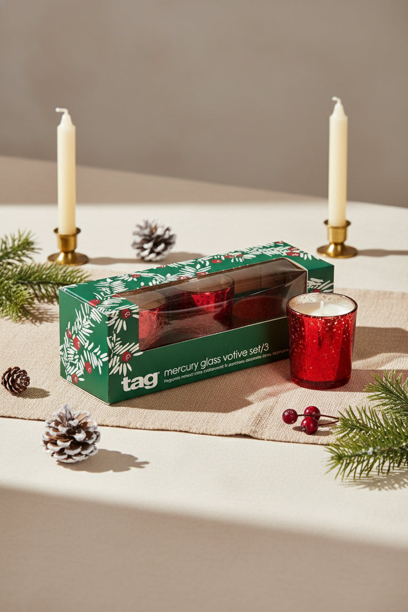 Winter Bonfire Mercury Votive Candle Set Of 3