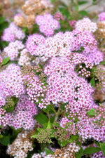 Little Princess Spirea is draped in stunning clusters of pink flowers at the ends of the branches from late spring to early summer. It has emerald green deciduous foliage which emerges chartreuse in spring. The small serrated pointy leaves turn an outstanding coppery-bronze in the fall.