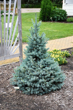 Stunning silvery-blue needles, slow growth rate, and a classic conical form make this dwarf spruce an ideal plant for the modern landscape. A perfect miniature version of the Colorodo blue spruce, it requires little maintenance to maintain its tidy form. It's tolerant to most adverse conditions thrown its way like road salt and drought.