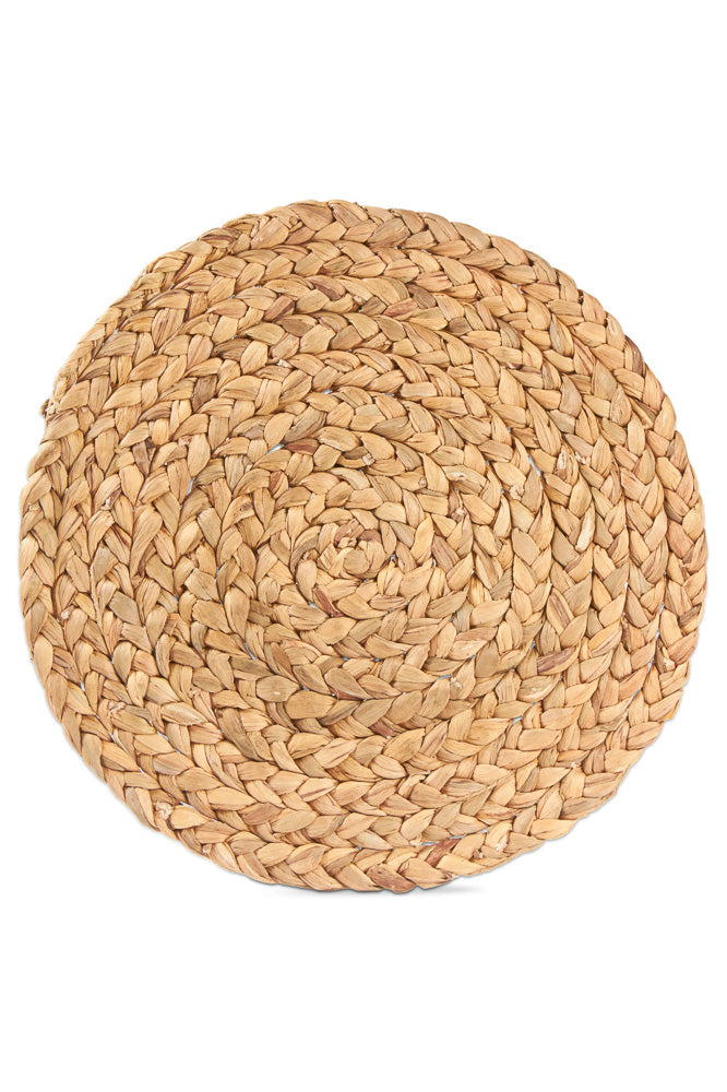A braided water hyacinth placemat is a delightful accent for complementing a fresh dining table place setting. Use as an alternative to the standard placemat or in lieu of a charger plate. Round, hand braided. Hang tag. Artisan-made.
