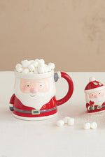 4" Round x 4"H 12 oz. Hand-Painted Ceramic Santa Shaped Mug, Multi Color