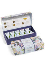The Demoiselle Petite Presentation Box contains 10 pyramid infusers of 5 blends, two of each: Citrus Earl Grey (Black tea), Mountain Oolong (Oolong tea), Wildflower Honey Citrus (Green tea), Ginger Lemongrass (Herbal tea), and our newest caffeine-free blend, Tropical Passion Flower (Herbal tea).