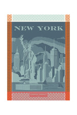 Unit price perThe New York Jacquard Kitchen Towel by Garnier Thiebaut features vibrant imagery of New York City in bold orange and blue. Hand-drawn by in-house French artisans and woven from extra-long staple cotton, it blends urban charm with lasting durability, adding a touch of NYC flair to your kitchen.
