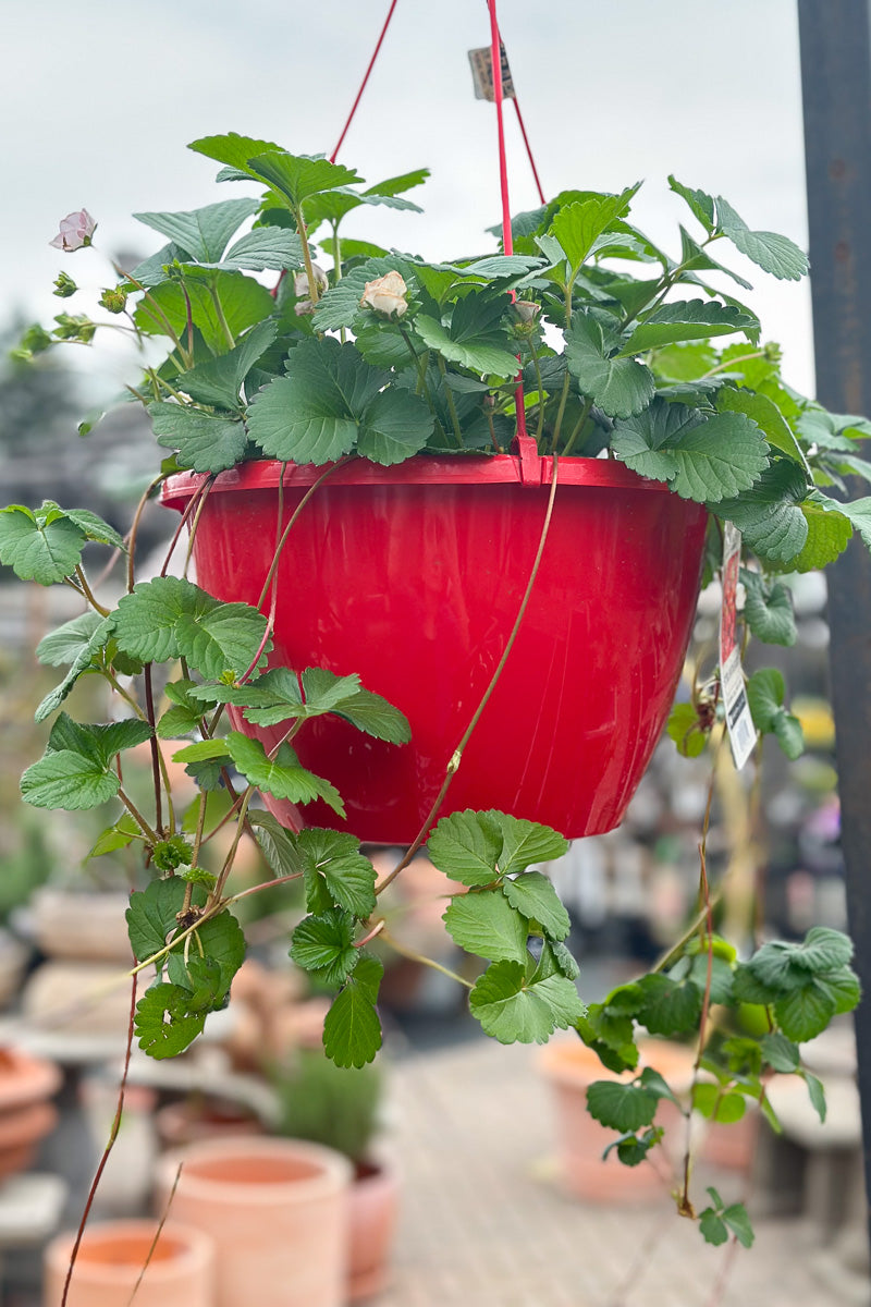 Strawberry is a perennial that is typically grown for its edible qualities. It produces cherry red heart-shaped berries which are usually ready for picking from late spring to late summer. This variety is considered an everbearing type of strawberry, which means that it will repeatedly produce fruit across most of the season. The berries have a sweet taste and a firm texture.