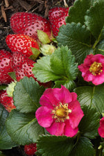 An edible jewel for garden, patio or balcony! Toscana features brilliant pink flowers that continue to produce juicy, deep red strawberries from summer until first frost. Spreads gently by runners in borders or herb beds, or spills beautifully from a container. Often semi-evergreen in frost-free climates.