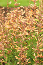 Meant To Beeâ„¢ Queen Nectarine Anise Hyssop features airy spikes of lightly-scented peach tubular flowers with lilac purple calyces rising above the foliage from mid summer to early fall, which emerge from distinctive orange flower buds. The flowers are excellent for cutting. Its fragrant narrow leaves remain green in color throughout the season.