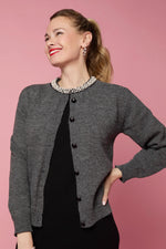 Alayna Cardigan with Pearl Beaded Collar Charcoal Heather L/XL