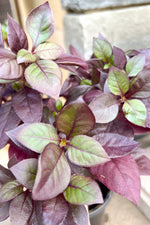 Purple Prince Alternanthera's attractive pointy leaves emerge olive green in spring, turning burgundy in color with showy purple variegation the rest of the year on a plant with a spreading habit of growth.