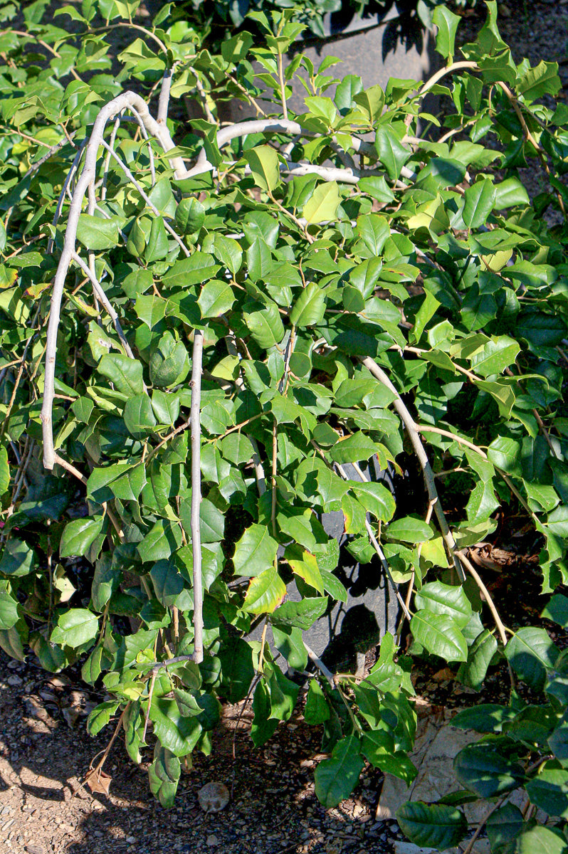 Ramblin' Man™ Weeping American Holly is primarily valued in the garden for its highly ornamental weeping form. It has dark green evergreen foliage. The spiny oval leaves remain dark green throughout the winter.