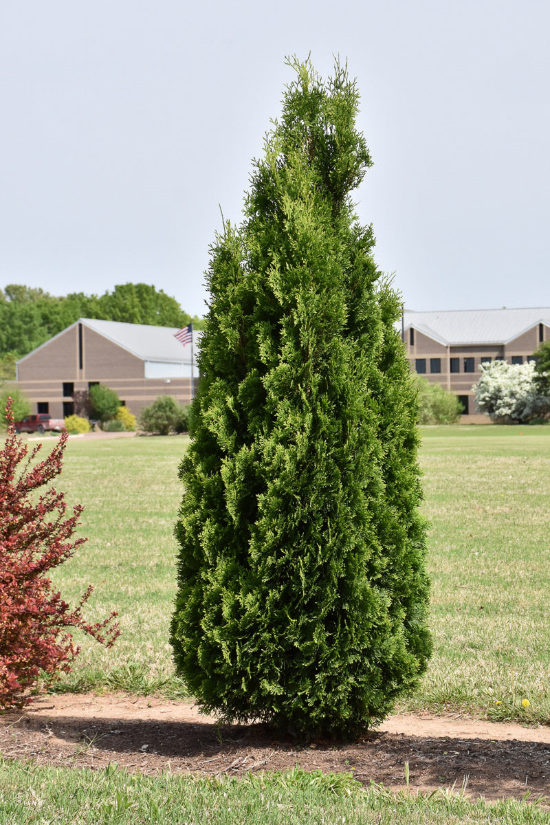 North Pole® Arborvitae is a dwarf conifer which is primarily valued in the landscape for its rigidly columnar form. It has dark green evergreen foliage. The scale-like sprays of foliage remain dark green throughout the winter.