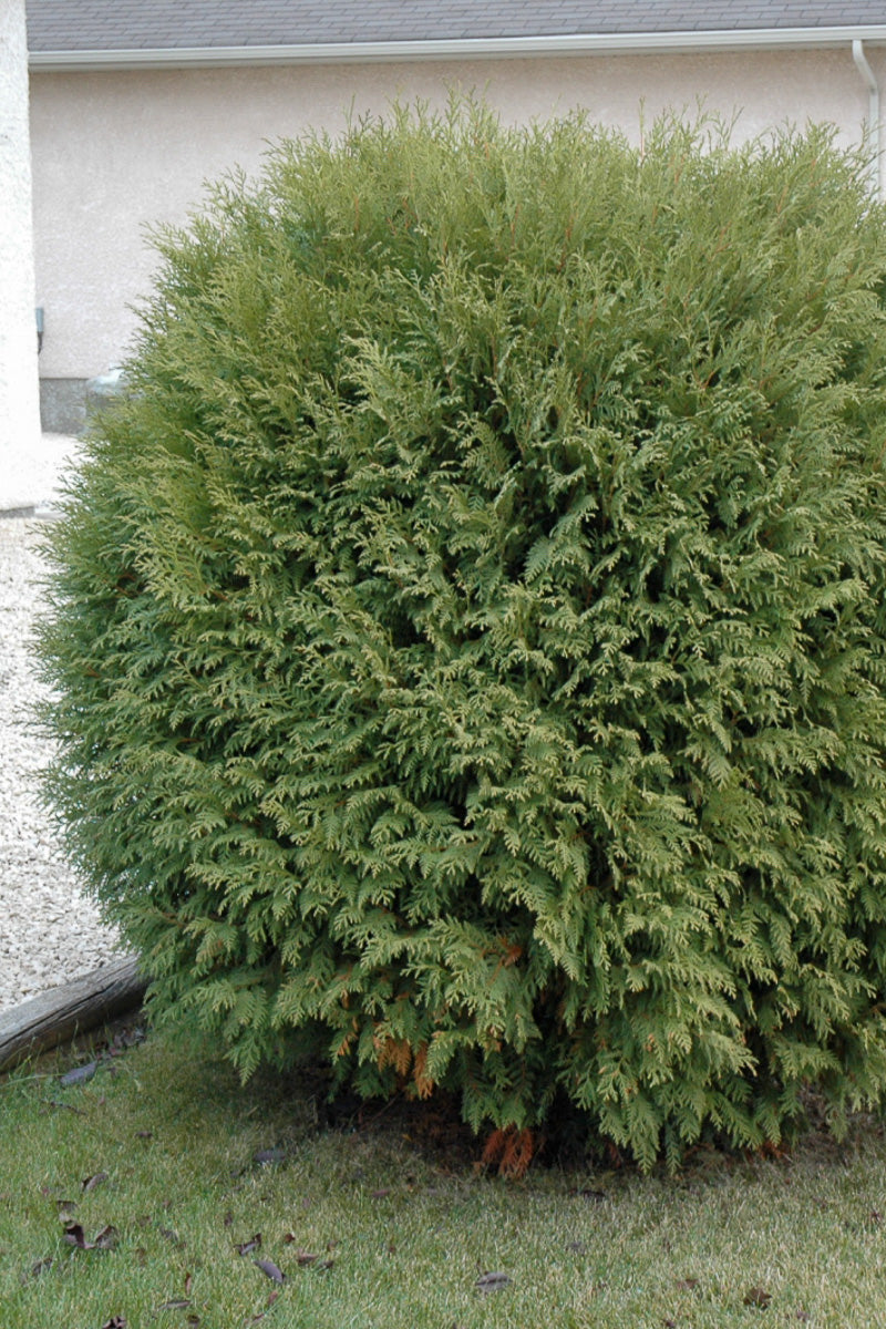 Woodward Globe Arborvitae is a dwarf conifer which is primarily valued in the landscape or garden for its ornamental globe-shaped form. It has rich green evergreen foliage. The scale-like sprays of foliage remain green throughout the winter.