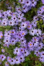 October Skies Aster has masses of beautiful sky blue daisy flowers with yellow eyes at the ends of the stems from early to late fall, which are most effective when planted in groupings. The flowers are excellent for cutting. Its narrow leaves remain dark green in color throughout the season.