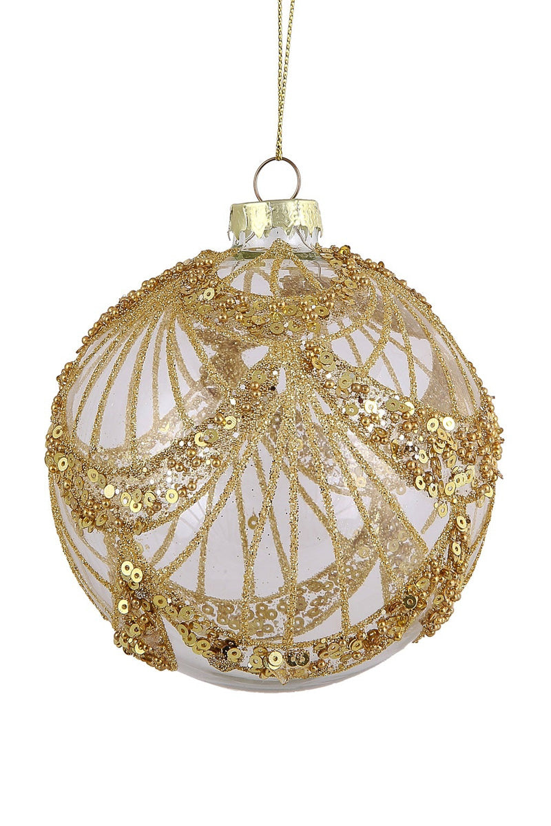 Beaded Festoon Ball Ornament 4" Clear & Gold