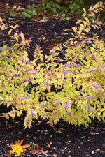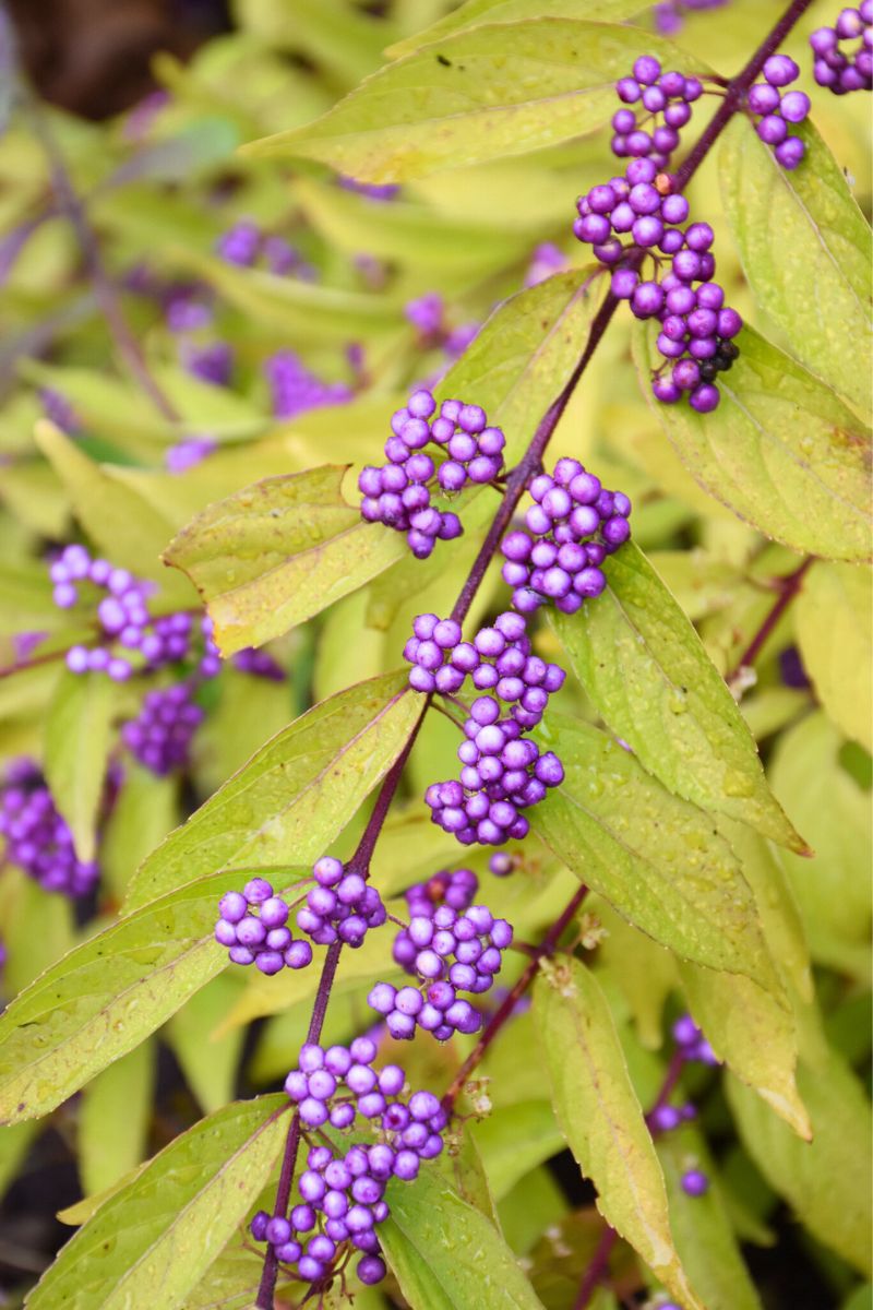 Early Amethyst Beautyberry is primarily grown for its highly ornamental fruit. It features an abundance of magnificent lavender berries from late summer to late fall. It has lavender trumpet-shaped flowers along the branches from early to mid summer, which are interesting on close inspection. It has green deciduous foliage. The narrow leaves do not develop any appreciable fall color.