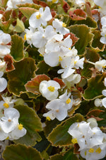 Cocktail® Whiskey® Begonia features dainty white orchid-like flowers at the ends of the stems from mid spring to mid fall. Its attractive succulent heart-shaped leaves remain dark green in color with hints of coppery-bronze throughout the year.