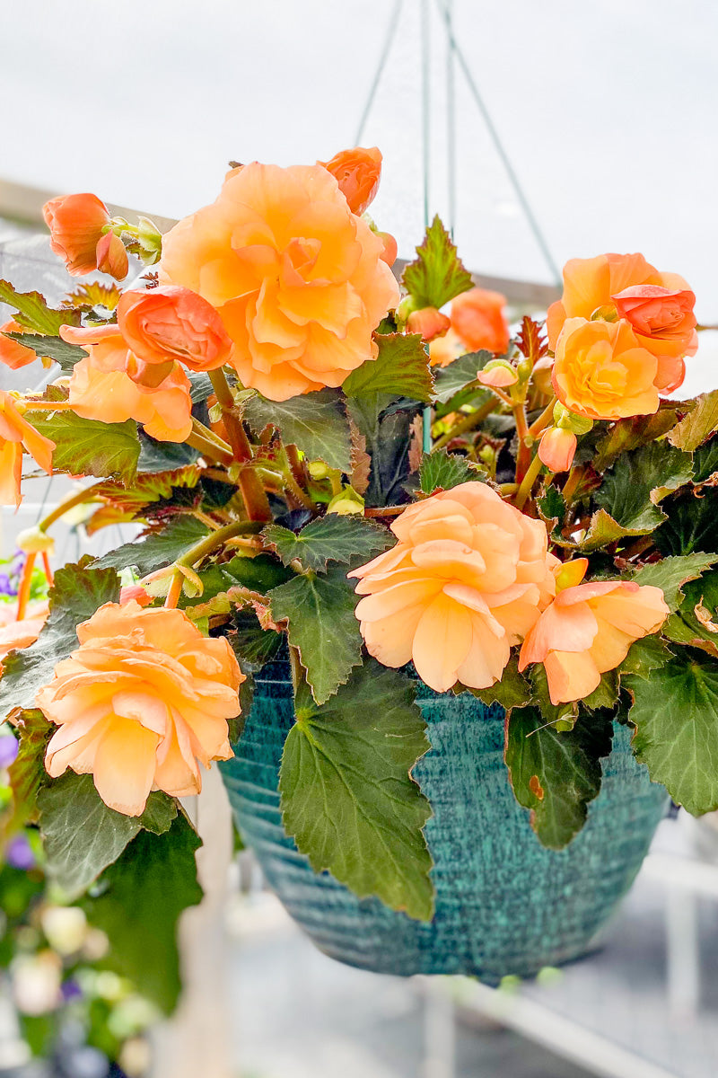 Enhance your living space with our 13" Peach Begonia Hanging Basket. Featuring lush peach-colored foliage that gracefully cascades from the basket, this captivating plant adds a touch of natural elegance to any interior or exterior décor. With its velvety leaves and easy maintenance, this hanging basket is perfect for both plant enthusiasts and beginners. Hang it in well-lit areas to enjoy its vibrant beauty and create a captivating focal point in your home or office. Elevate your surroundings with the enchanting allure of the Peach Begonia today.