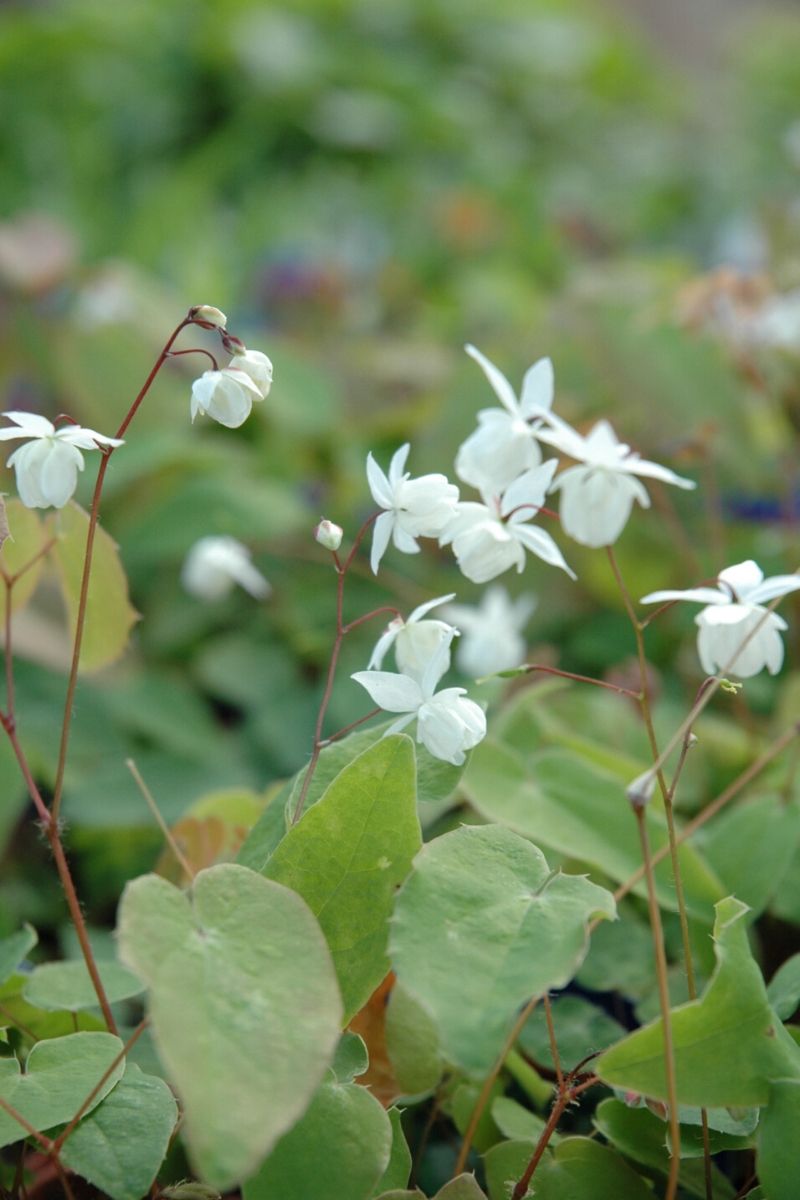 Delicate white shooting star-like nodding flowers; shield-shaped green leaves have reddish mottling in spring and fall; makes a great groundcover that is tolerant of dry shade once established; also grows well in moisture if well-drained