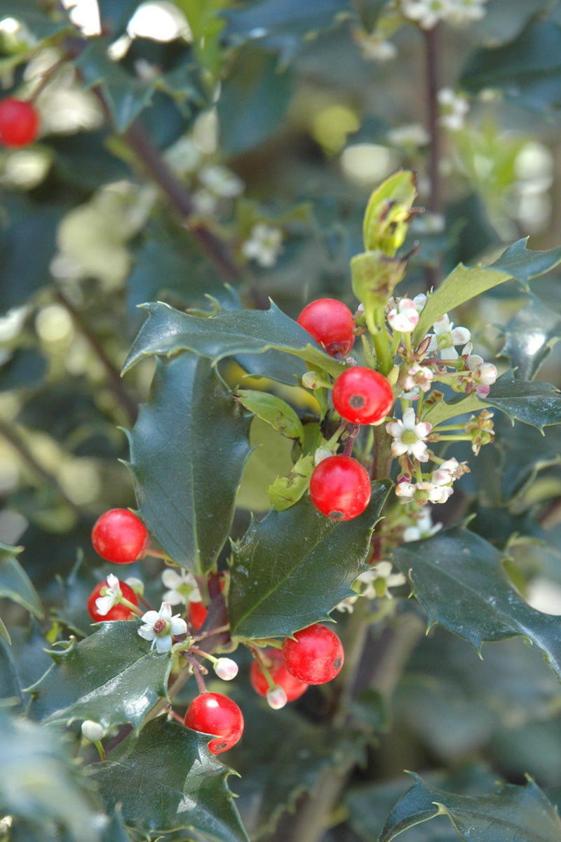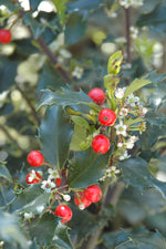Berri-Magic Kids Meserve Holly is primarily grown for its highly ornamental fruit. It features an abundance of magnificent red berries from mid fall to late winter. It has dark green evergreen foliage. The spiny oval leaves remain dark green throughout the winter.