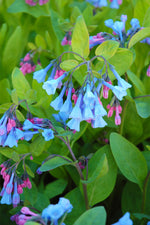 Virginia Bluebells features dainty nodding blue bell-shaped flowers at the ends of the stems from mid to late spring, which emerge from distinctive fuchsia flower buds. Its attractive pointy leaves remain bluish-green in color throughout the season. Virginia Bluebells is an herbaceous perennial with a mounded form. This plant will require occasional maintenance and upkeep, and should not require much pruning, except when necessary, such as to remove dieback. Deer don't particularly care for this plant.