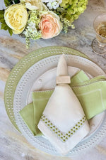 Unit price perRound mats with pearl-like embroidered dots around the edge. Available in multiple colors.