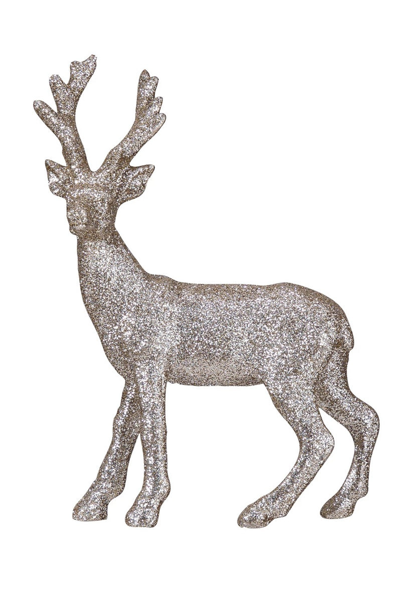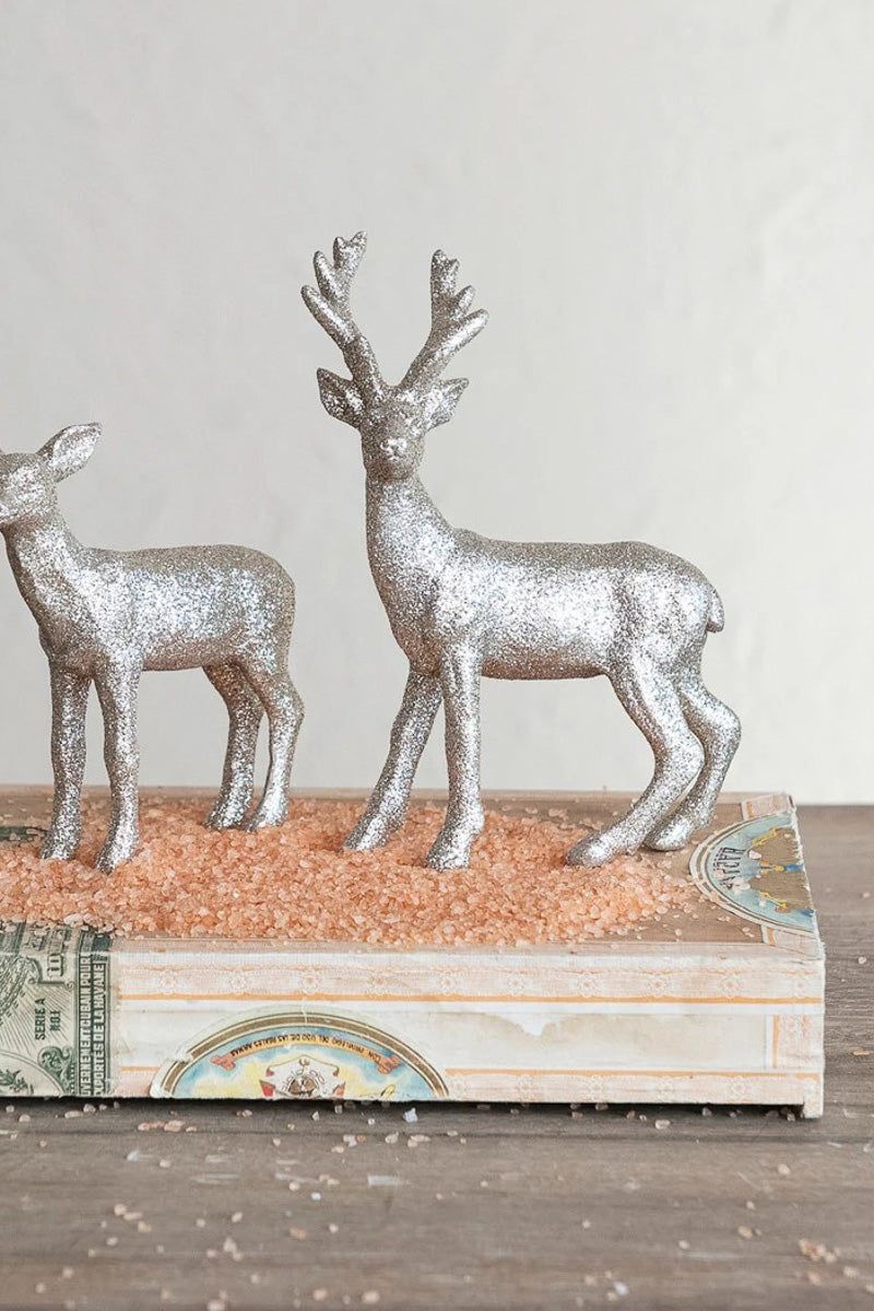 4-3/4"L x 1-3/4"W x 5-3/4"H Resin Buck w/ Glitter, Silver Finish