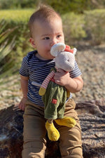 Unit price perHenry is a wonderfully cute mouse that won't scare any of your family members. He is made out of a durable plush that is incredibly soft to the touch and an adorable gift for a person of any age. As you can see, Henry loves to coordinate his hats with his outfits! His classic striped shirt and contrasting earthy green pants with orange patches make him easy to find if lost.