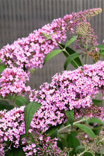 Pink Delight Butterfly Bush features showy panicles of fragrant pink flowers at the ends of the branches from mid summer to mid fall. The flowers are excellent for cutting. It has grayish green deciduous foliage. The fuzzy narrow leaves do not develop any appreciable fall color.