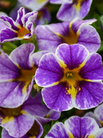 Superbells ® Holy Smokes!â„¢ Calibrachoa is covered in stunning purple trumpet-shaped flowers with yellow throats and white stripes at the ends of the stems from late spring to mid fall. Its small pointy leaves remain green in color throughout the season.