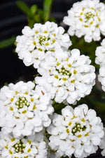 Snowsurferâ„¢ Forte Candytuft is smothered in stunning clusters of lightly-scented white flowers with chartreuse eyes at the ends of the stems from early to late spring. Its narrow leaves remain dark green in color throughout the year.