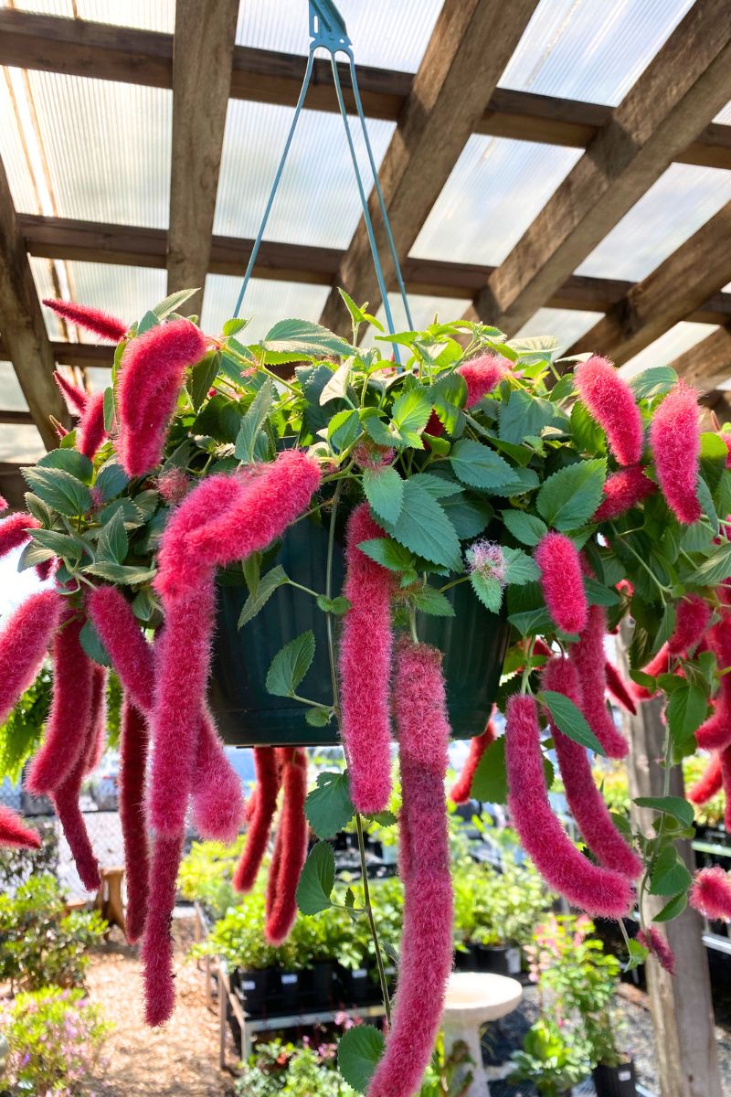 Experience the enchantment of the Chenille plant as it gracefully cascades from the basket, showcasing its unique and captivating fuzzy red blooms. Each 10" hanging basket is carefully cultivated to ensure a healthy and vibrant specimen that thrives in its suspended habitat. The Chenille Hanging Basket adds a touch of whimsical charm to any space, whether it be your living room, patio, or office. With its easy maintenance and eye-catching beauty, this hanging basket is perfect for plant enthusiasts and beginners alike. Elevate your surroundings with the irresistible allure of the 10" Chenille Hanging Basket and let its extraordinary blooms become a focal point of admiration and conversation.
