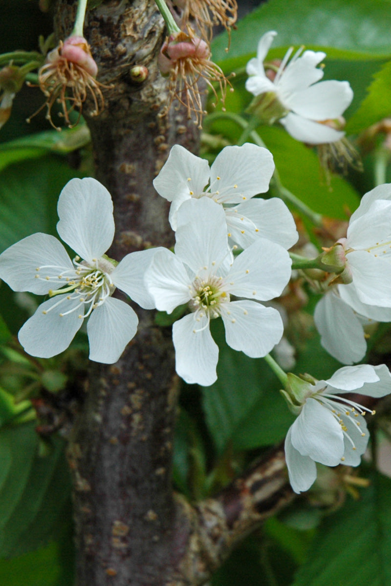 Rainier Cherry is a medium-sized tree that is commonly grown for its edible qualities. It produces yellow round fruit (technically 'drupes') with a red blush and yellow flesh which are usually ready for picking in mid summer. Note that the fruits have hard inedible pits inside which must be removed before eating or processing. The fruits have a sweet taste and a firm texture.