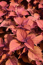 Wall Street Coleus' attractive serrated pointy leaves remain coppery-bronze in color with hints of purple throughout the year on a plant with an upright spreading habit of growth.