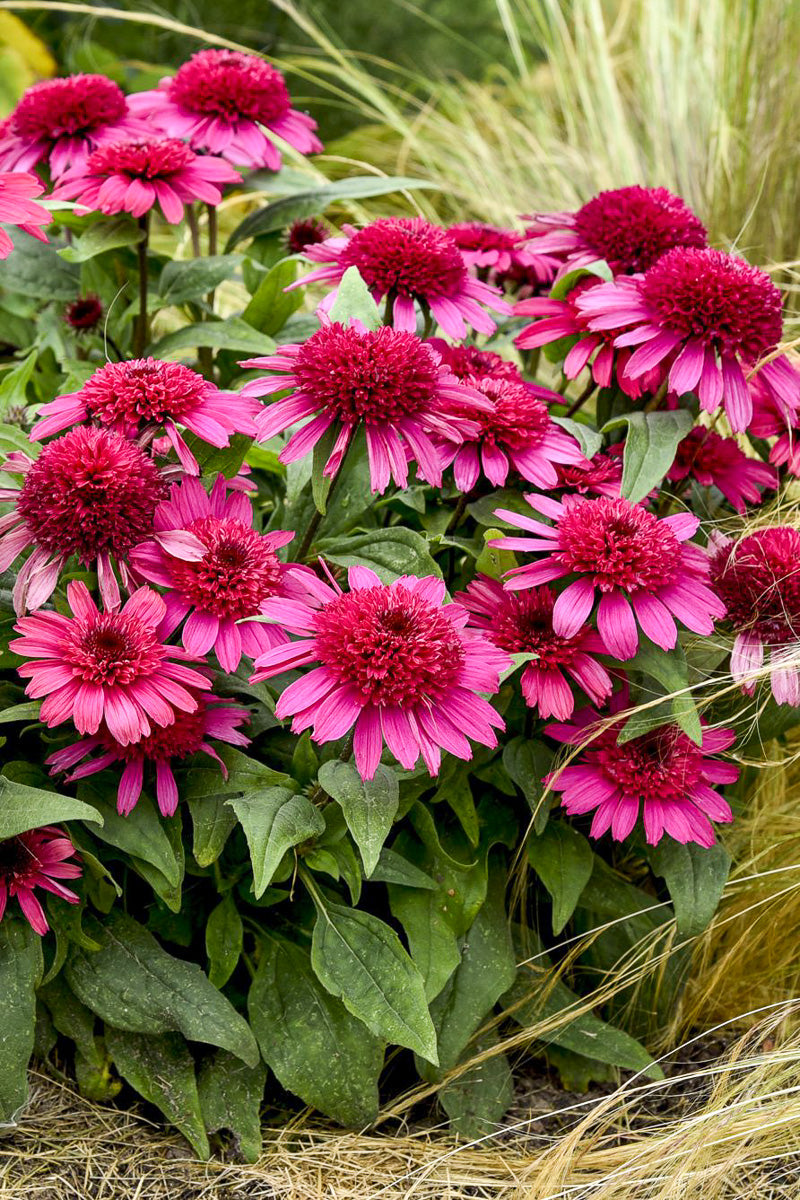 Fully double intense raspberry pink flowers, 4†wide, with ray petals to match. Prolific floral production seated atop dense rosettes of foliage. Broad, horizontal ray petals maximize flower size.