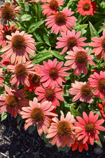 Summersong™ Firefinch™ Coneflower has masses of beautiful lightly-scented orange daisy flowers with red overtones and coppery-bronze eyes at the ends of the stems from mid summer to mid fall, which are most effective when planted in groupings. The flowers are excellent for cutting. Its pointy leaves remain green in color throughout the season.