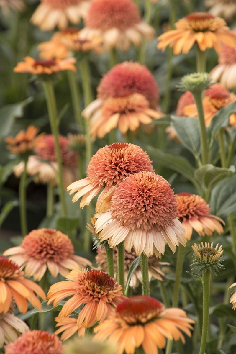 Like no other - a coneflower the exact color of a ripe cantaloupe! Fragrant, long-lasting blooms with a conspicuous center cone show off atop strong, non-floppy stems. Superior branching creates a full yet compact shape. This hardy herbaceous perennial is perfect for a border or cutting garden, and tolerates drought when established.