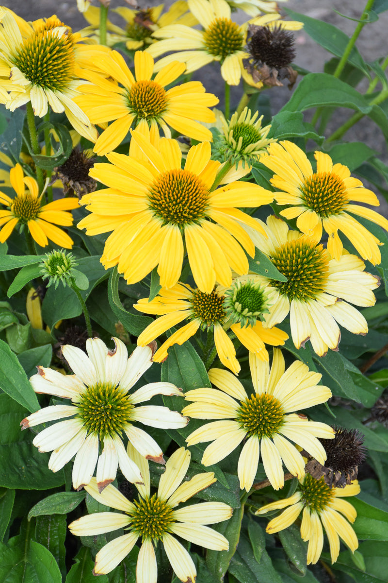 Color Codedâ„¢ Yellow My Darling Coneflower has masses of beautiful lightly-scented yellow daisy flowers with coppery-bronze eyes at the ends of the stems from mid to late summer, which are most effective when planted in groupings. The flowers are excellent for cutting. Its pointy leaves remain dark green in color throughout the season.