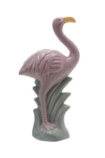 Unit price per3-1/4"L x 2"W x 6-1/2"H Stoneware Vintage Reproduction Flamingo w/ Gold Electroplated Beak, Pink & Green