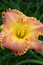 Jekyll Island Daylily features bold fragrant rose trumpet-shaped flowers with yellow throats and yellow edges at the ends of the stems from mid summer to early fall. The flowers are excellent for cutting. Its grassy leaves remain green in color throughout the season. These fragrant flowers measure 6" in diameter and shimmer in the sunlight as if covered with a frosty mist.