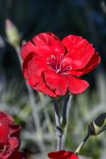 American Pie ® Cherry Pie Pinks is smothered in stunning fragrant cherry red frilly flowers at the ends of the stems from late spring to late summer. The flowers are excellent for cutting. Its attractive narrow leaves remain grayish green in color with hints of silver throughout the year.