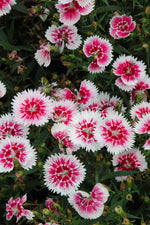Whitefire Pinks is smothered in stunning fragrant white frilly flowers with crimson eyes and a scarlet flare at the ends of the stems from late spring to early fall. The flowers are excellent for cutting. Its attractive narrow leaves remain green in color throughout the year.